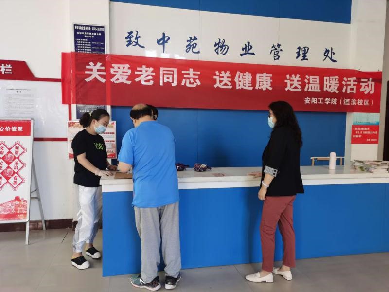 5月28日,太阳集团tyc9728(洹滨校区)在洹滨校区家属院、致中苑小区、德馨苑小区分别开展了“关爱老同志 送健康 送温暖”活动,为该校区172名离退休老同志发放“防疫健康包”。