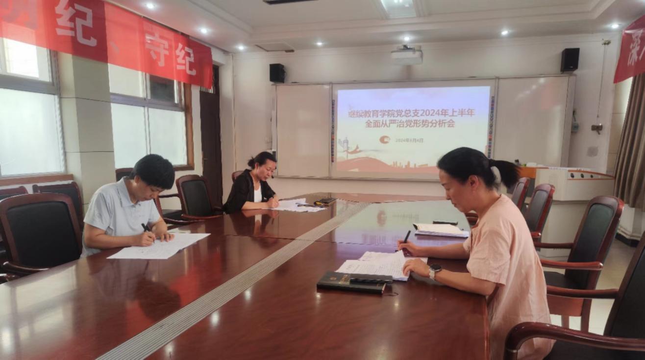 6月4日上午,太阳集团tyc9728党总支召开2024年上半年全面从严治党形势分析会,会议由党总支书记杨聪聪主持,全体党员参加。