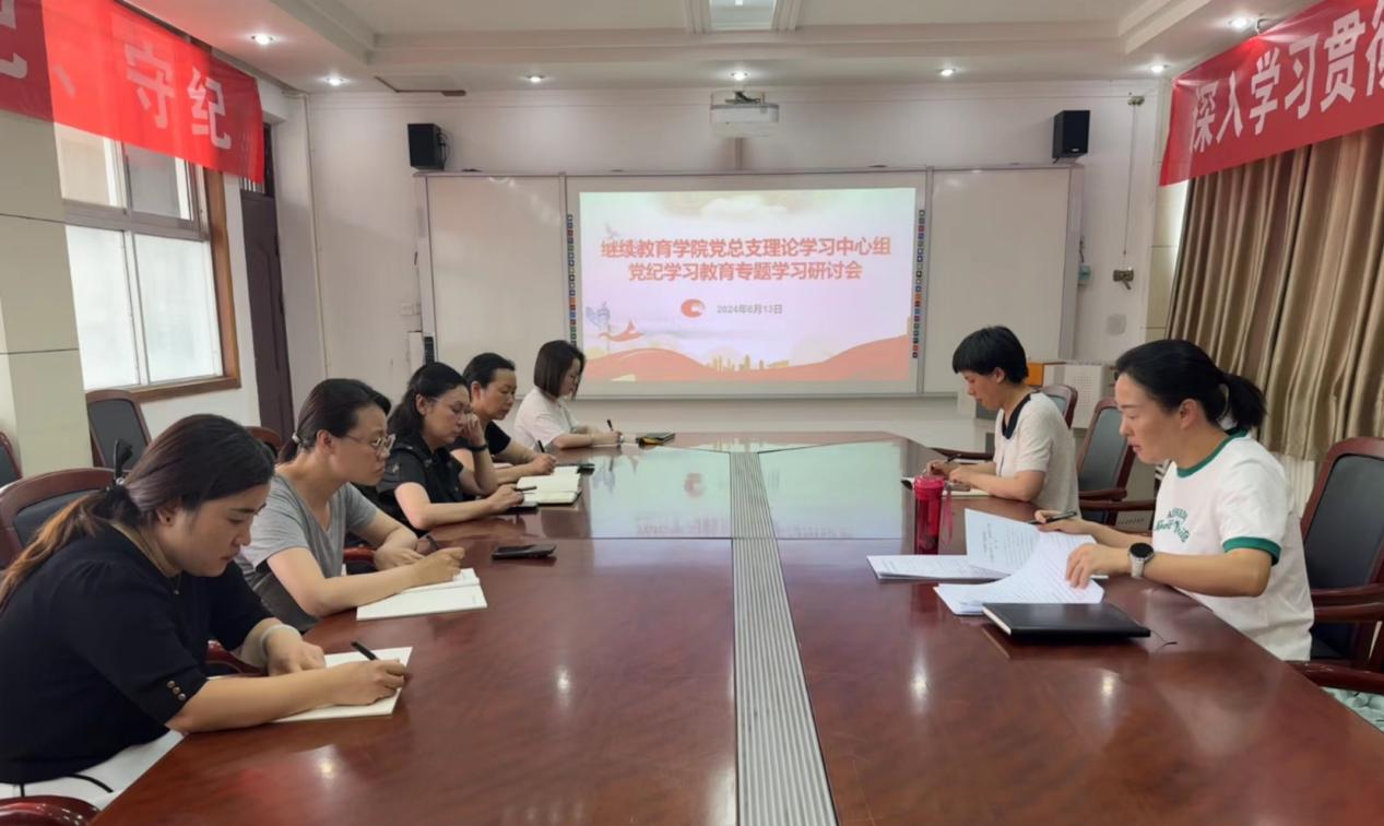 6月13日下午,太阳集团tyc9728理论学习中心组以“工作纪律和群众纪律”为主题,召开党纪学习教育专题学习研讨会。党总支理论学习中心组成员参加,党总支书记杨聪聪主持会议。